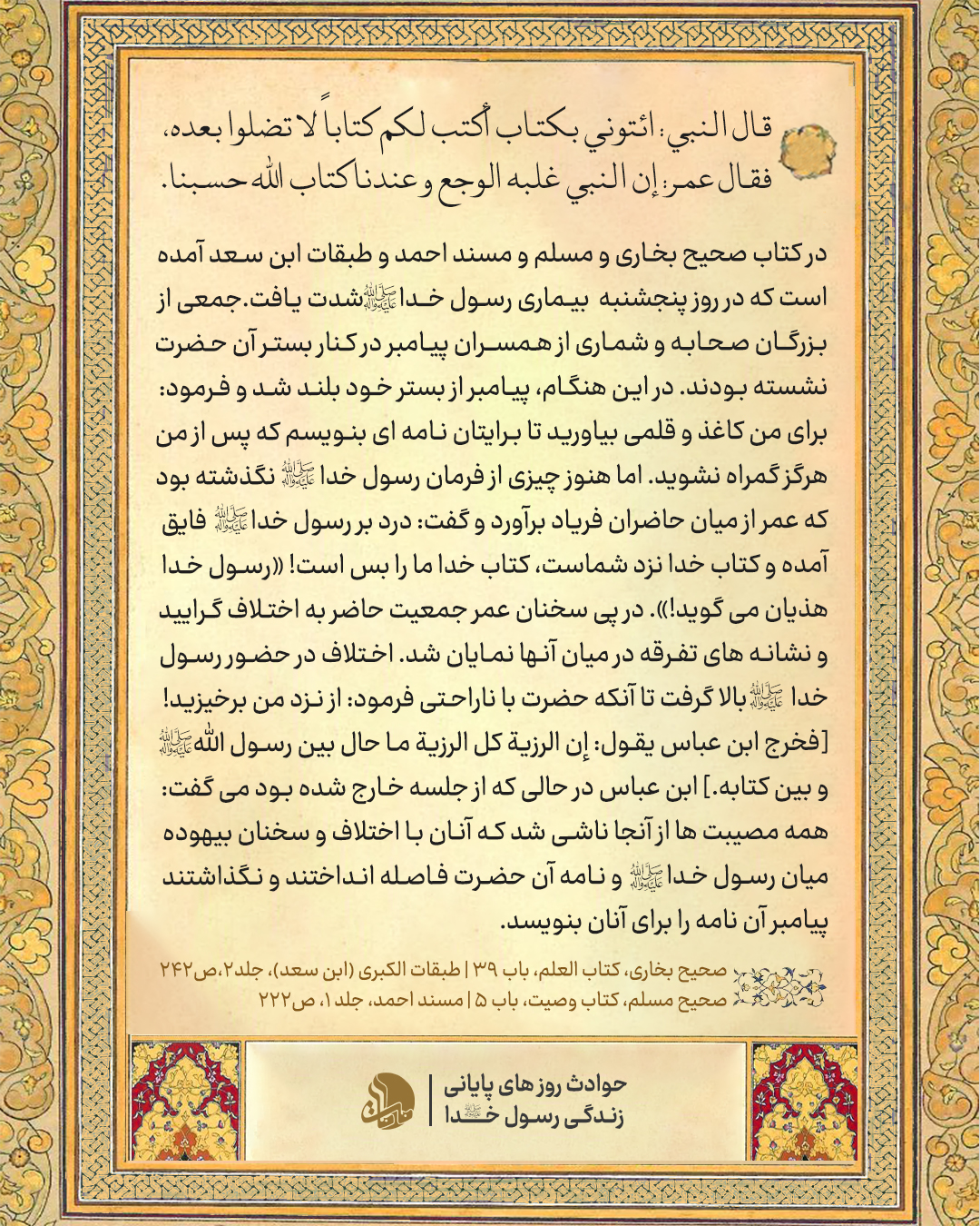 - پیامبر صلی الله علیه و آله و سلم, دوات و قلم, روزهای پایانی