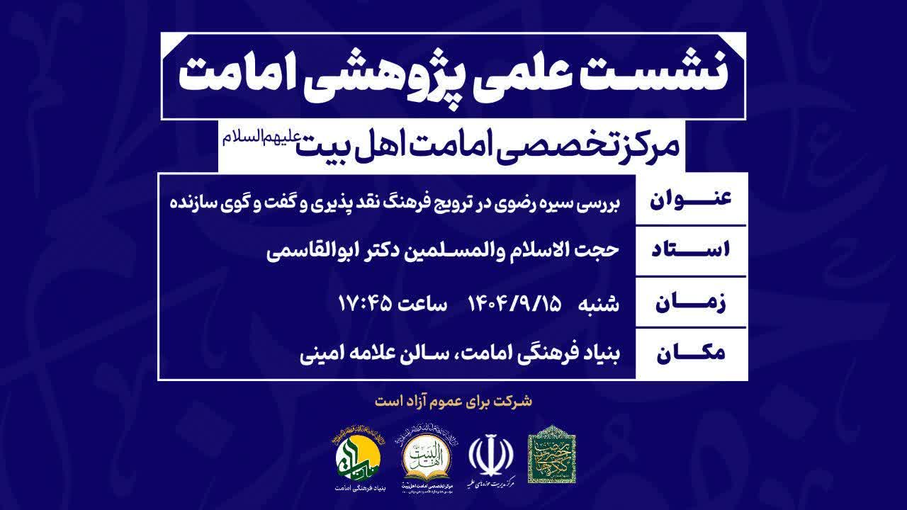 یازدهمین جلسه از سلسله دروس امامت حضرت آیت الله سید علی حسینی میلانی دامت برکاته، با موضوع عدالت صحابه در روز دوشنبه مورخ 24 مهر ماه ۱۴۰۲، در سالن علامه میرحامدحسین بنیاد فرهنگی امامت، بعد از اقامه نماز مغرب و عشاء به امامت معظم له برگزار گردید.